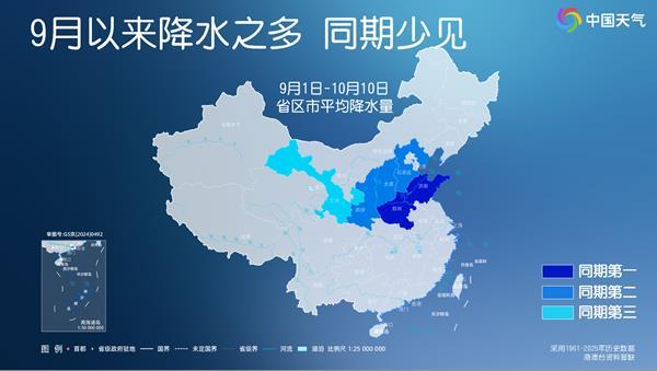 9月以来华西至黄淮一带降雨时常,尤其是四川东北部、陕西南部、湖北西北部、河南中南部、山东西南部等地降雨日数多数达到了30天以上,局地超越35天。