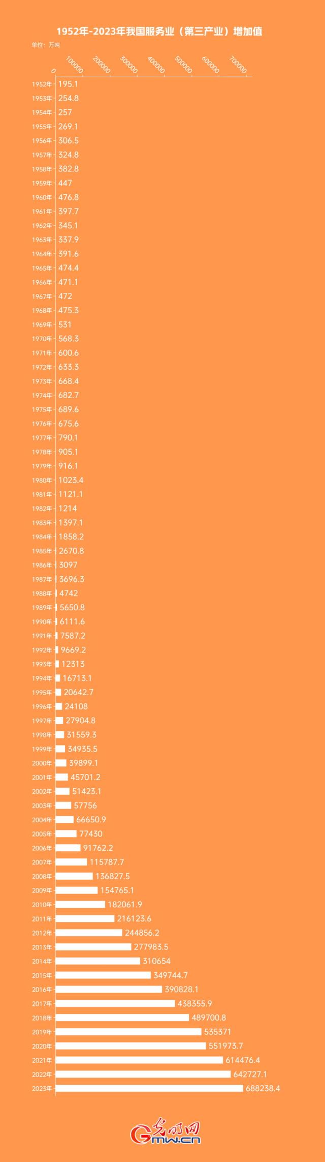 附:1952年-2023年我国管功绩(第三产业)加多值数据(单元:亿元):